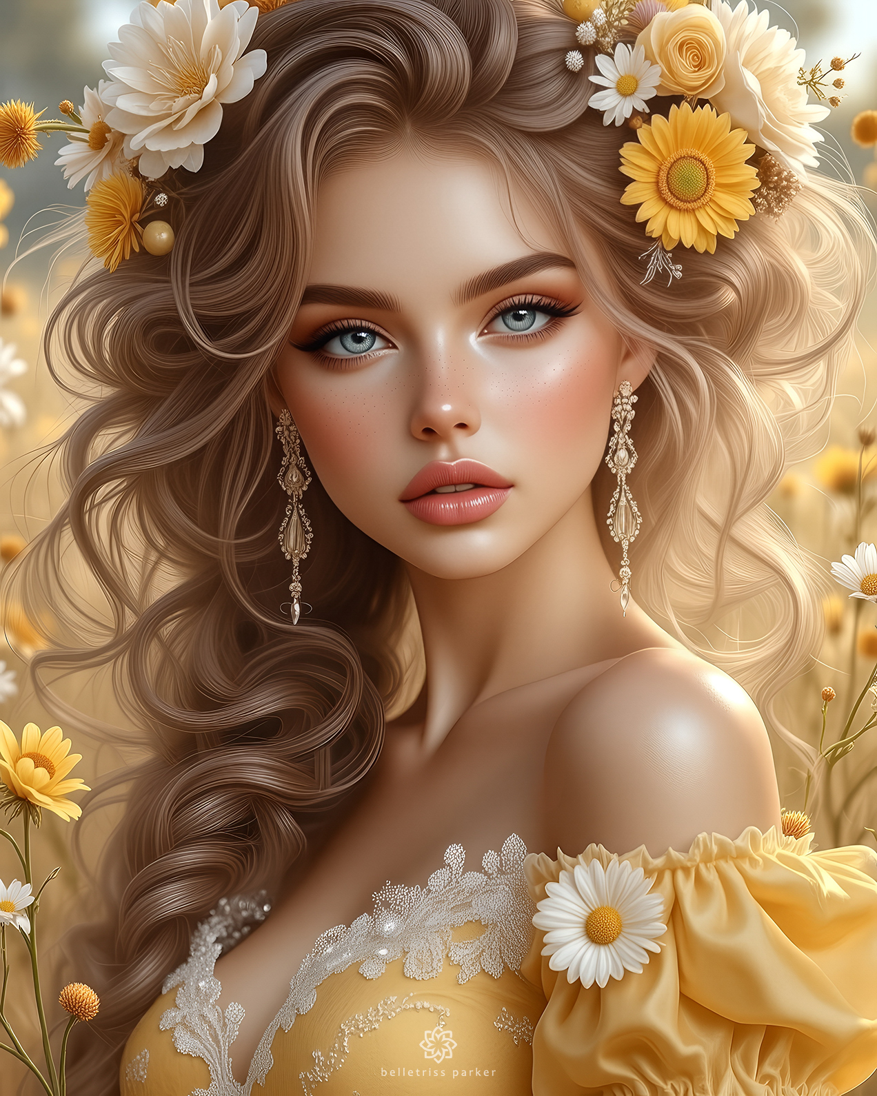 Embrace the gentle warmth of the season with this stunning visual inspiration. This portrait captures the essence of spring, blending delicate floral motifs with soft, golden-hour lighting. The intricate lace detailing perfectly complements the natural beauty of the daisies and sun-kissed blossoms, creating a flawless fusion of romantic elegance and vibrant energy.